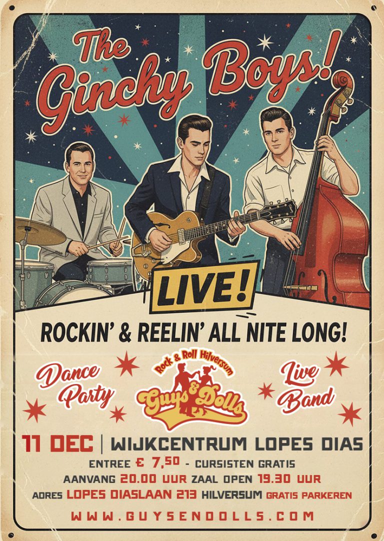 Guys & Dolls geeft les in buurtcentrum “Lopes Dias” aan de de Lopes Diaslaan 213, te Hilversum. Rock & Roll dansen staat bij veel mensen hoog op het verlanglijstje. De swingende muziek van o.a. Elvis Presley, Bill Haley, Gene Vincent & Chuck Berry nodigt uit om lekker samen te dansen.